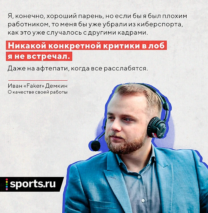– Понятное дело, что когда я ведущий, у меня есть определенные рамки поведения, которые я не могу переходить. Я не могу общаться настолько же вольно и свободно, просто потому что я использую достаточное количество нецензурной лексики в повседневной жизни. Вне эфира у меня куда больше творческой свободы, я могу делать все: я не ограничен одной игрой, одной дисциплиной или одним турниром.