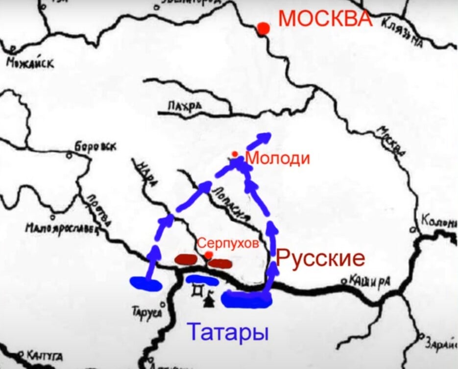 Войско хана двинуло на Москву, а Воротынский, узнав об этом, снял части с места и двинулся вдогонку. Предполагалось, что Девлет Гирей не захочет штурмовать Москву, имея большое войско у себя в тылу. Осада укрепленного Кремля, внутри которого были пушки – все же не самая быстрая операция, требующая много ресурсов. Для 16 века план Воротынского был очень и очень неплох – силы хана в любом случае оказывались бы под угрозой атаки в спину.