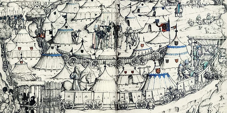 Гравюра с примерным изображением «гуляй-города».