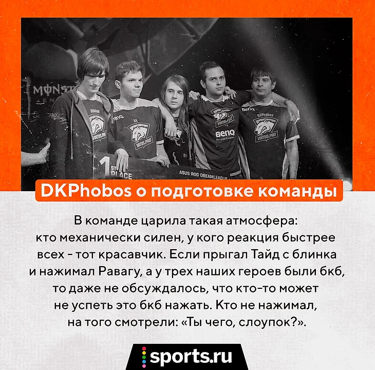«Все в этой команде были жесткими трудягами, – вспоминает DKPhobos. – И в коллективе царила рабочая атмосфера. Не поощрялись отдых, плохая игра, плохая коммуникация. Даже если кто-то раздраженно вздохнет в игре – он сразу получал в лицо кучу копий от всех. Дисциплина очень сильно поддерживалась коллективом, потому что так было принято».