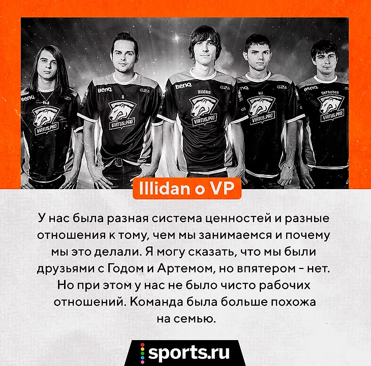 «Назвать нас друзьями было тяжело, потому что мы довольно разные люди, – утверждает Illidan. – У нас была разная система ценностей и разное отношение к тому, чем мы занимаемся и почему мы это делаем. Я могу сказать, что мы были друзьями с Годом и Артемом, но впятером – нет. При этом у нас не было чисто рабочих отношений. Команда была больше похожа на семью».