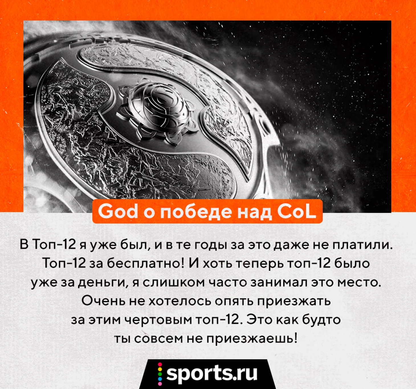 «Empire была лучшей СНГ-командой, чем мы, – заключает God. – Я для себя запомнил, что как команда они, наверное, посильнее нас были, стабильнее в целом. Поражение было нежелательно, это конкурент из СНГ и принципиальный матч. Но это не было бы чем-то из ряда вон выходящим».