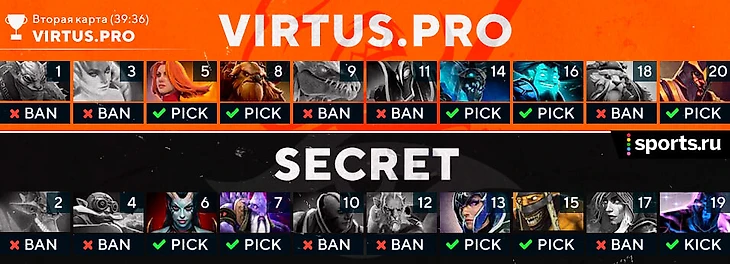 Во второй карте Team Secret выглядела странно и потерянно. Невнятный лайнинг, где Артур остается на линии практически один, непонятные драки. Это потом мы узнаем о растущем конфликте в Team Secret, а пока VP неожиданно стала играть с фаворитами на одном уровне. Через 40 минут и одну крутую драку «медведи» сравняли счет. И как будто сами не поверили себе.