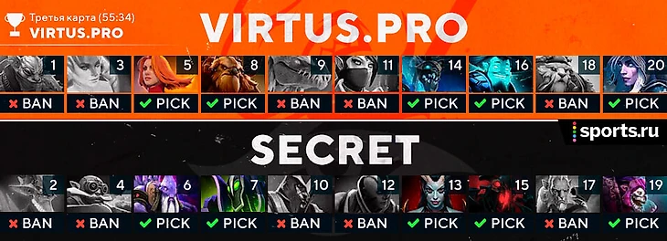 1:1 – это счет, при котором в игру вступают нервы. С одной стороны Team Secret, фавориты в 1 карте от вылета. С другой – VP, аутсайдеры-середнячки в 1 карте от сенсации. Кажется, в третьей карте руки тряслись у обеих сторон.