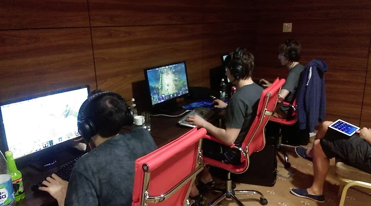 Возможно, это был один из самых роскошных буткемпов The International 5. Антону Черепенникову удалось выбить неплохую скидку, чтобы разместить дотеров в шестизвездочном (да, именно так) отеле «Украина». Игроки жили в самых комфортабельных номерах, завтракали в ресторане гостиницы, а их тренировочная комната располагалась в конференц-зале где-то между салоном «Майбаха» и дорогущим мясным рестораном, который охраняли ФСОшники размером в три стандартных дотера. Каждый день пять вполне стандартных дотеров проходили мимо них по стеклянно-мраморным коридорам и, громко обсуждая игры, рассаживались в отделанном деревом зале.