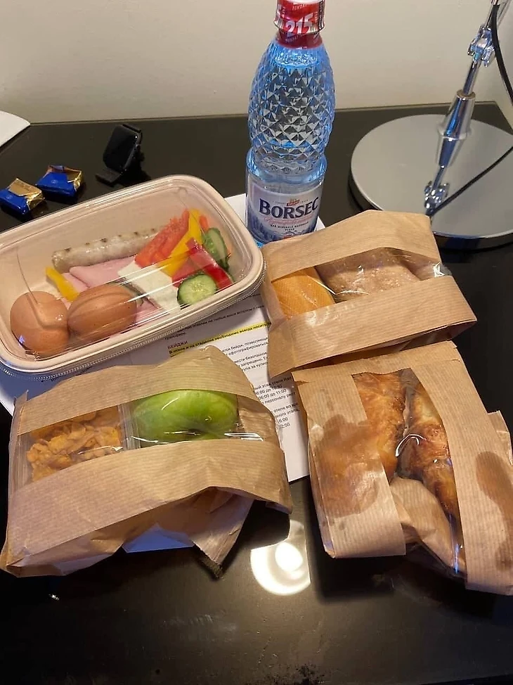 Судя по инстаграму, Лазаря, спортивного директора Virtus.pro, обед немного богаче – курица с картошкой в соусе, колбаса, булки и десерт: