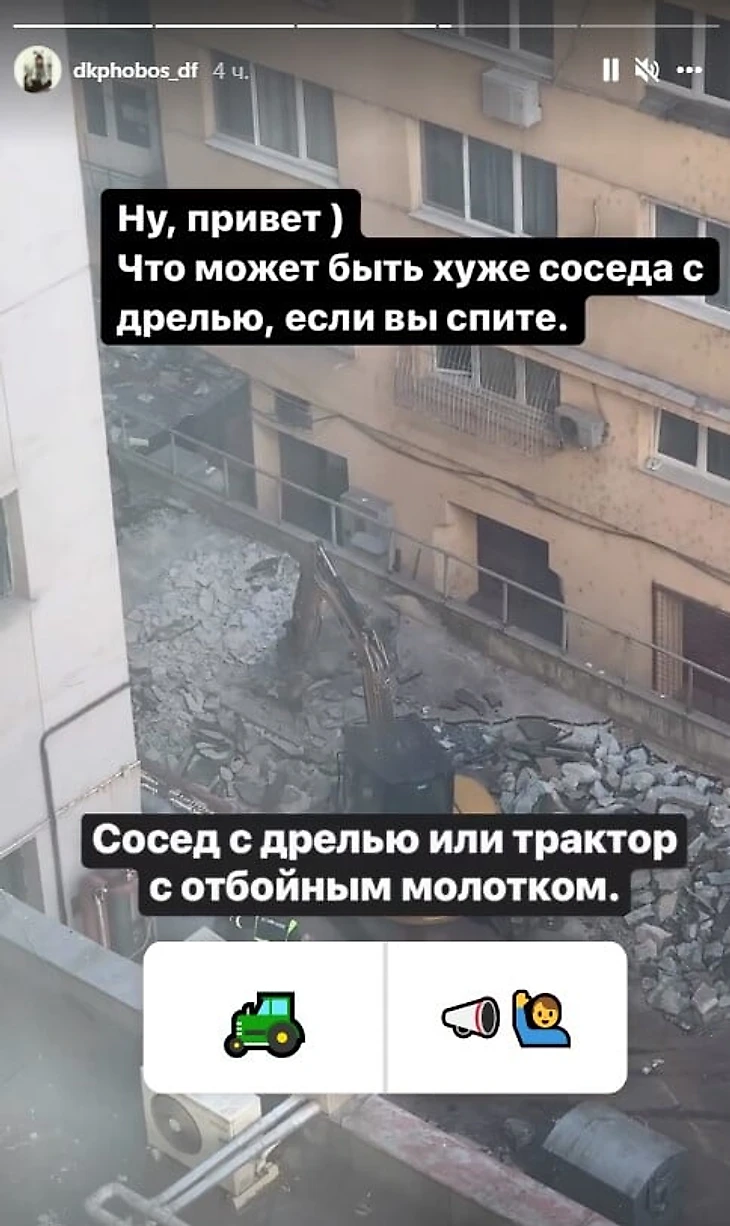 Но это еще не все проблемы, связанные с проживанием, – DkPhobos в инстаграме пожаловался на стройку под окнами номера: