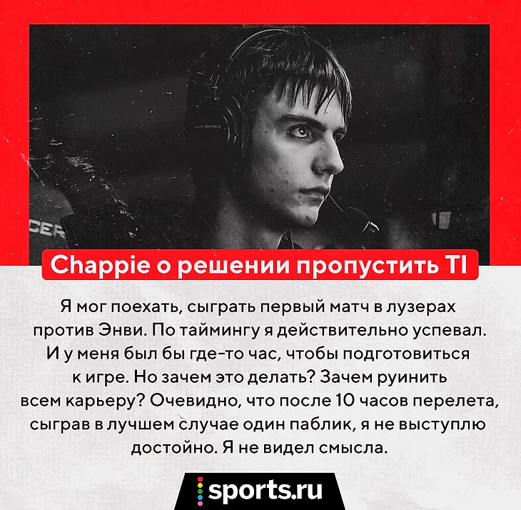 «Я мало помню, о чем идет речь. Но это просто странно, – отвечает на его слова Chappie сейчас. – Мы прошли весь плей-офф без единого поражения. Возможно, что-то такое и проскакивало, потому что я максималист и всегда есть куда расти. Но это странно – отказываться от турнира, к которому ты шел столько времени».