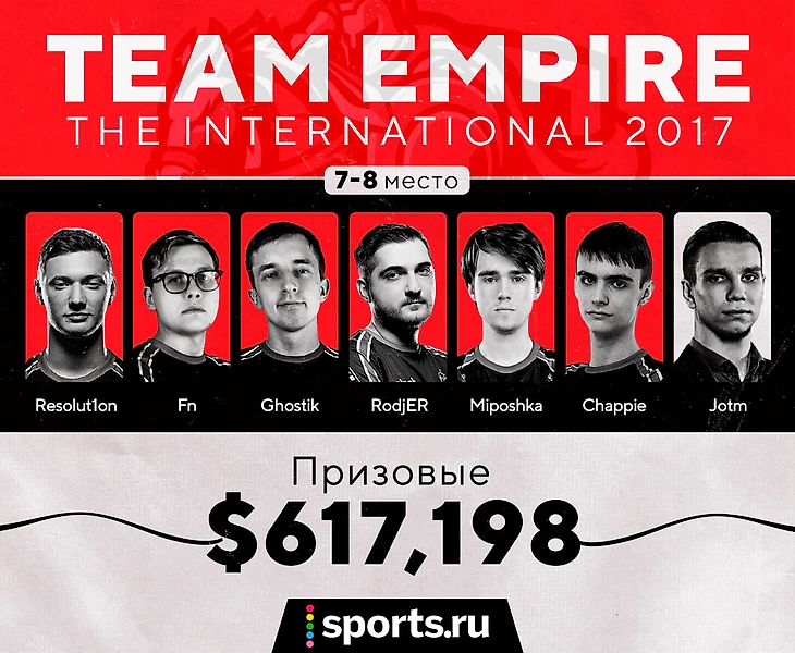 Team Empire приехала на The International без керри, но игроки выглядели спокойно. Резоль уладил все вопросы с Valve и снова примерил имперскую футболку. Правда, времени на тренировки с новым керри практически не осталось. Команда успела сыграть только несколько кланваров против Newbee – и знатно отлететь. Топ-2 The International раз разом обыгрывал андердогов из СНГ просто на классе.