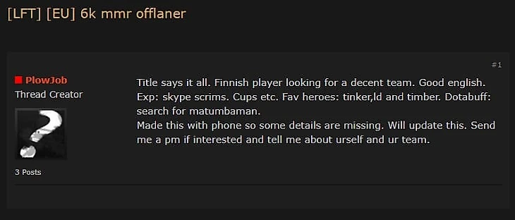 7. В 19 лет родители поставили Лассе ультиматум: или он уходит из дома, или прекращает играть в Доту. Мату переехал к девушке, запостил на форуме joindota милое сообщение о поиске команды (причем видел себя оффлейнером), а вскоре откликнулся на приглашение Trixi в стак 4A+SC.