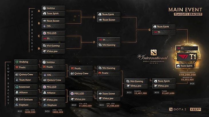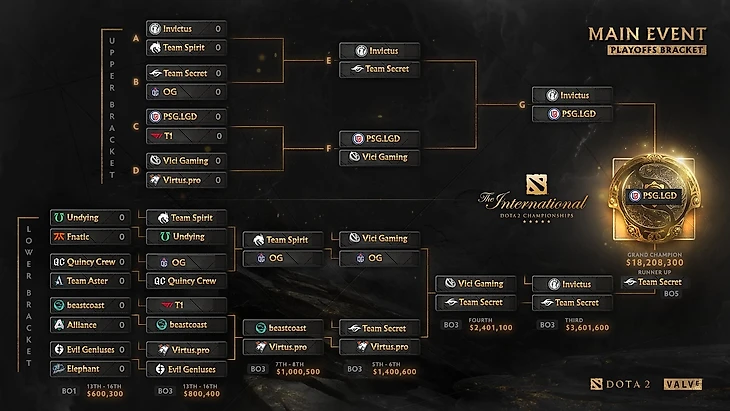 Расписание и результаты матчей сетки плей-офф The International 2021