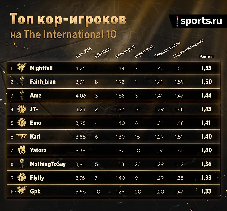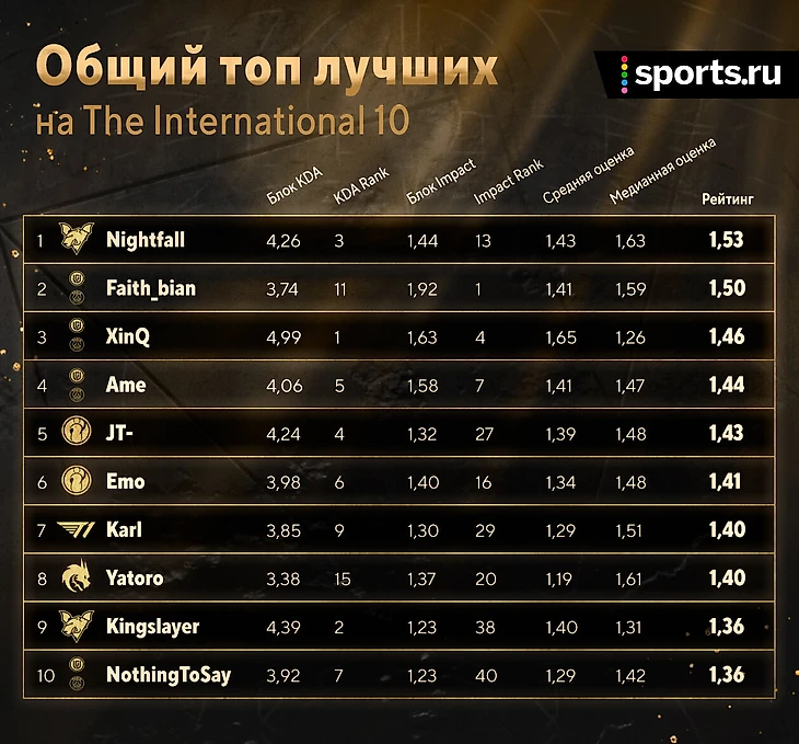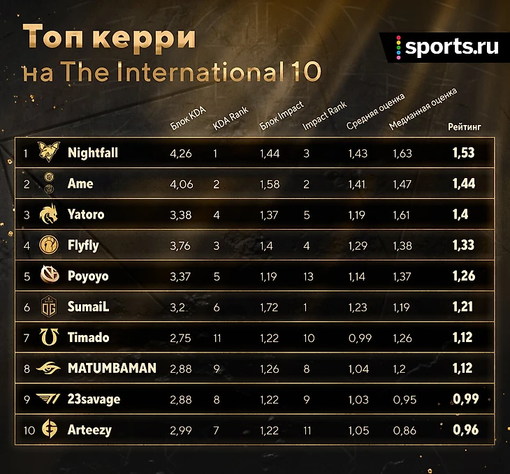 Рейтинг игроков по итогам групп TI 10: Nightfall – самый сильный, у VP лучшая пара саппортов