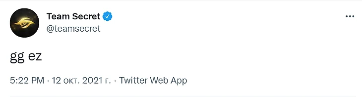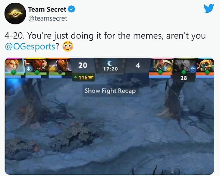 В итоге Сикрет выиграла 2-0 без шансов для OG. И по ходу матча твиттер команды уничтожал противника.