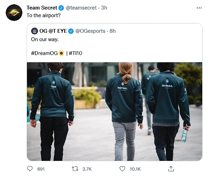 «OG, в аэропорт?» Secret и OG давно и жестко воюют в твиттере, Себ даже материл сммщика в личке