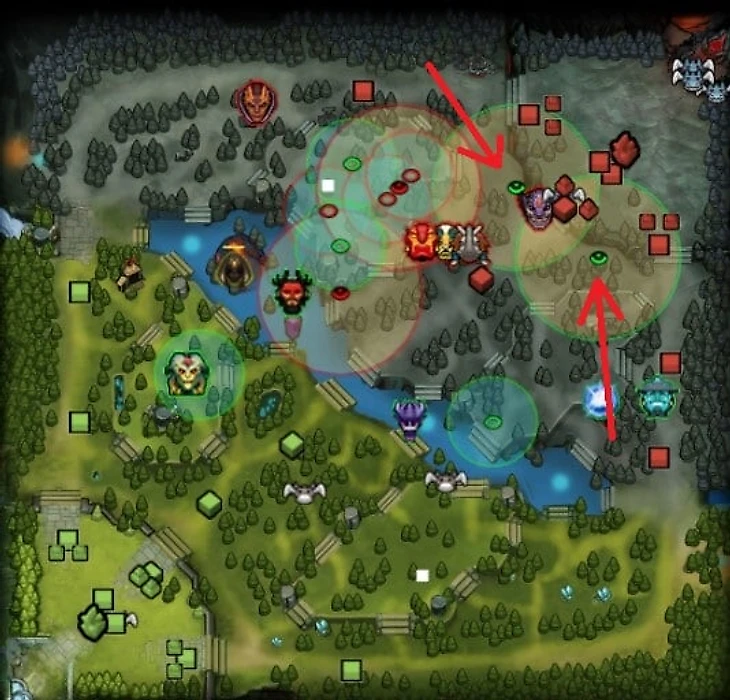 Как вы могли заметить, Virtus.pro не любят бить вышки – после уничтожения линии Т1 команда Сэйва обычно просто занимает территорию противника перед речкой и фармит ее. Столь агрессивная позиционка позволяет Virtus.pro держать линии под вышками противника и нападать на героев, потерявших макро-позицию. Что еще важнее – это заставляет противника прожимать смоки либо из единственной свободной зоны на его половине (обычно – треугольник), либо прямо с базы. И для этих двух вариантов у VP есть очень нестандартный паттерн – при живых Т2 они вардят ХГ противника: