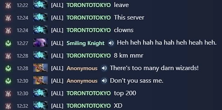 «Ливните с этого сервера, клоуны. 8k mmr, топ-200 XD»