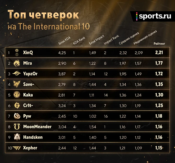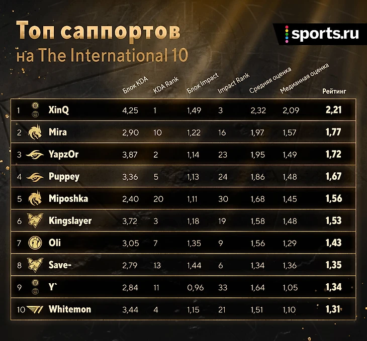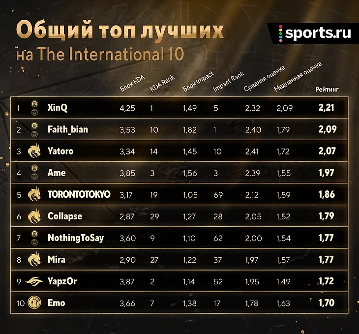 ★ Статистика Spirit говорит сама за себя. Давайте разберем подробнее показатели каждого чемпиона TI 10: