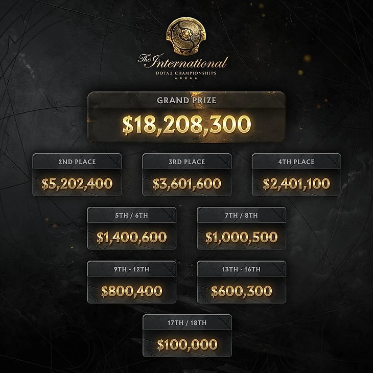 Призовой фонд The International 10 составил 40 018 195 долларов. Распределение между командами: