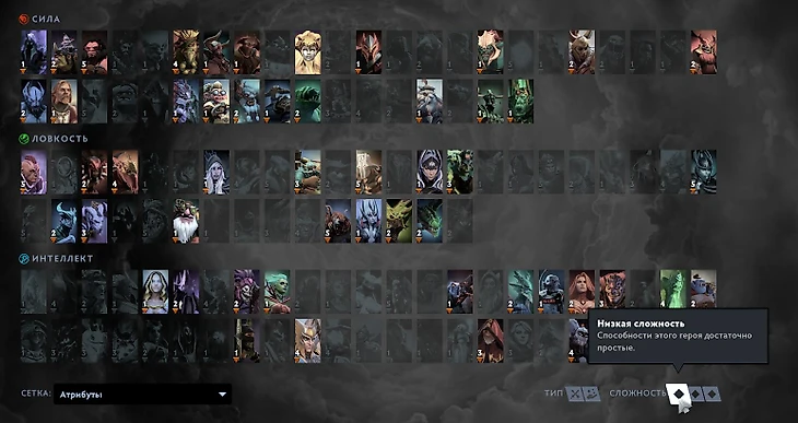 Начинать лучше с несложных героев, но со временем нужно быть готовым подниматься на ступень выше. Неплохой старт – фильтр сложно в меню выборов героя во время матча, а также во вкладке Герои. Фильтр находится в правом нижнем углу.