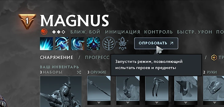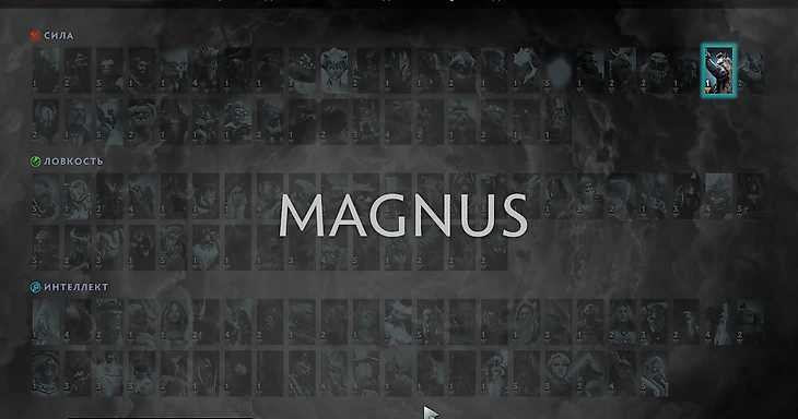 Что такое демо-режим? Допустим, вы хотите понять как работает Магнус. В сетке героев просто начните вводить Magnus, и игра сама подсветит героя.