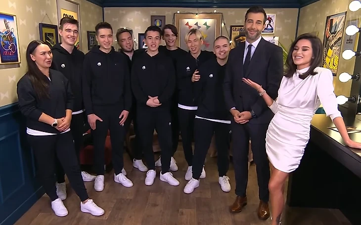 Началось шоу максимально неожиданно: Team Spirit вместе с Ксенией Бородиной прокричали «Мы счастливы!» – ведущая шоу «Дом 2» была еще одной приглашенной гостьей в этом выпуске.