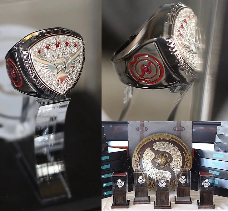 Чемпионские перстни получают все игроки, выигравшие The International. Традиция началась еще на первом TI, поэтому список команд, получивших перстни, такой: