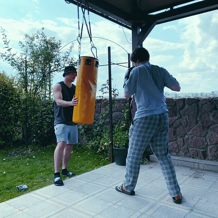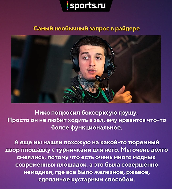 Просто Нико не любит ходить в зал, ему нравится что-то более функциональное. Вот как раз велосипед или боксерская груша. А еще мы нашли абсолютно аутентичную, похожую на какой-то тюремный двор, площадку с турничками для него. Мы очень долго смеялись, потому что есть очень много модных современных площадок, а это была совершенно немодная, где все было железное, ржавое, сделанное кустарным способом. Какие-то тяжеленные штанги, на которые нахлобучены бутылки с песком. Ее прям можно в таком виде поместить в какой-то фильм про тюремную жизнь, так что Нико туда отлично вписался.