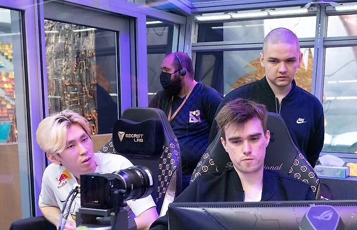 После Рошана Team Spirit немного расслабилась и разбрелась по карте: Yatoro и Mira пошли давить топ, а Collapse, Miposhka и TorontoTokyo остались фармить лес и тройку. Тем временем PSG.LGD в миду разбила опасный Смок, и если бы они быстрее оказались на топе, то вернулись бы в игру. Игроки объяснили, что произошло на карте, и как они должны были в идеале двигаться: