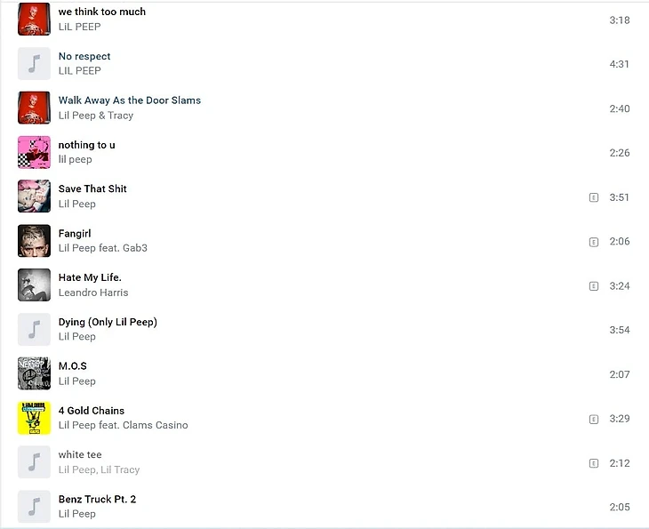 В аудиозаписях pure Вконтакте всего 73 песни – из них 69 принадлежат погибшему рэперу Lil Peep. Что это за исполнитель и откуда такая любовь к одному музыканту?