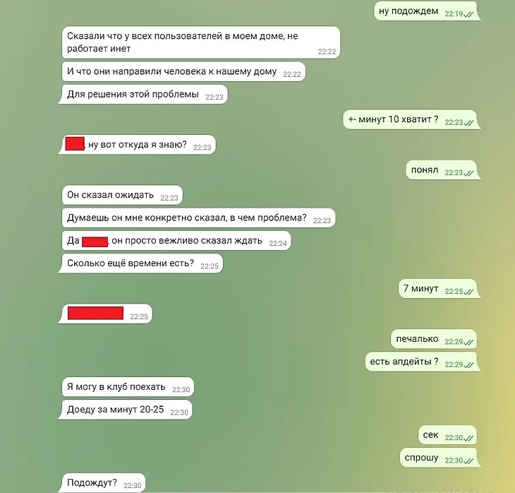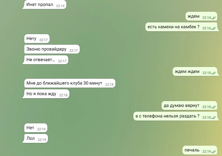 Все замазанные сообщения – матч. Сообщение от 22:25 можно расшифровать, как «все очень плохо».