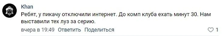 Позже организаторы дали Khan еще около 20 минут, чтобы найти замену или решить проблемы Пикачу с интернетом. В комментах в своем паблике ВК Khan писала, что Пикачу не успевал доехать до компьютерного клуба – до него было около 30 минут.
