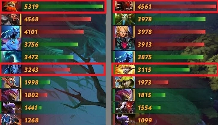 Две и полторы тысячи золота преимущества при не самых легких матчапах. Можно считать, что адаптация к линии идет успешно.
