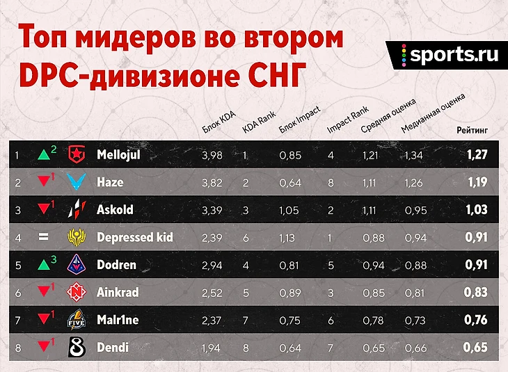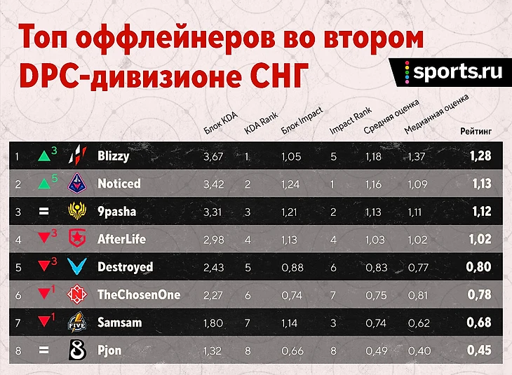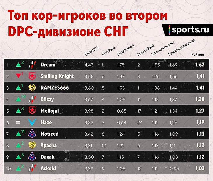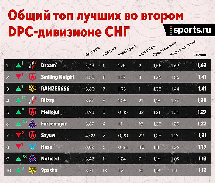 ★ Первая строчка Гидры – во многом заслуга Дрима и Близзи. Блестящая игра Дрима на МК против Немиги – 9-я в топе перформансов по итогам двух недель. Пока Кыялбек стабилен и хорош, поэтому и идет на первом месте.