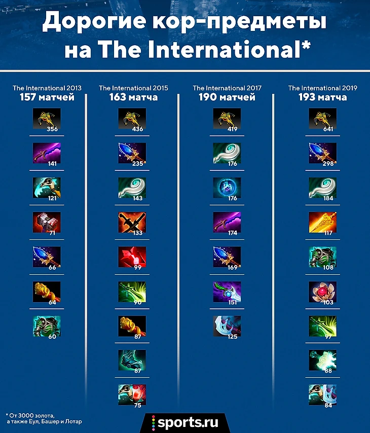 за 41 матч в финалах всех TI было куплено 67 БКБ – 1-е место среди дорогих предметов.