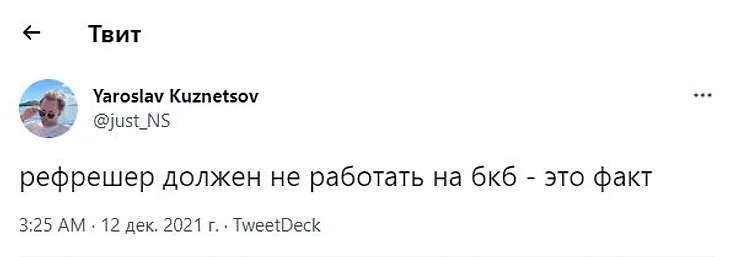 А в чем, собственно, факт? Должен ли работать Рефрешер на Хекс, Еул или Линкен? Если да, то в Рефрешере ли проблема ли? Явно нет. Проблема – в БКБ.