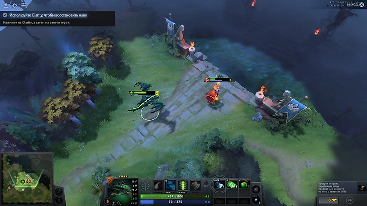 1.6 Следующий этап знакомит с предметами, которые служат расходниками для быстрого восстановления. Это Clarity, Tango, Healing Slave. Применяю их как на себя, так и на союзника, ноооо стоп, вы же мне в самом начале уже рассказывали про них. Я их также покупала, читала про них, пусть и использовала только на себя, но информацию по лечению союзника также усвоила. Почему бы не добавить это в первый этап? Хорошо, как говорится, повторение - мать ученья. Кнопки понажимала, союзника полечила, усвоила, пойду дальше. Оценка: 4 из 5.