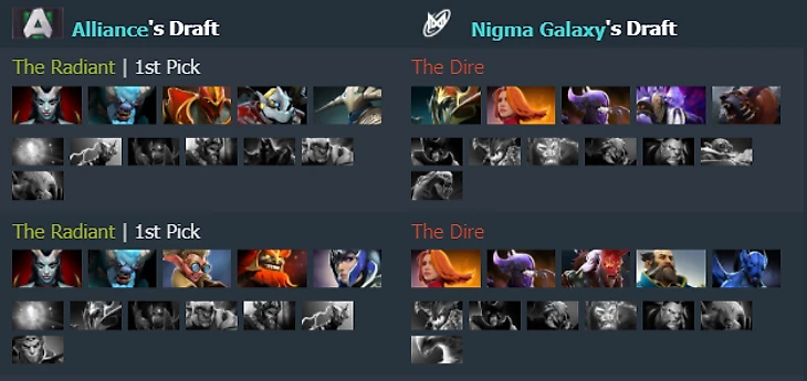 Посмотрите на драфты Alliance против Nigma Galaxy:
