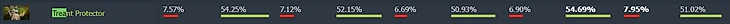 Трент прекрасно себя чувствует не только на про-сцене, но и в матчмейкинге. На всех рейтингах – выше 50% побед, а на ранге «Властелин» герой и вовсе входит в топ-5 по винрейту (54,7%).