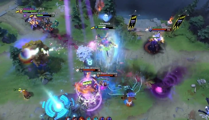 Внезапный пик Бруды для DM’а застал NAVI врасплох. Уже на седьмой минуте Natus Vincere оставили его одного внизу, пока два кор-игрока – General и V-Tune – безуспешно бились об вражескую тир-1 на легкой линии. Как результат – Виктор вышел к десятой минуты без фарма, а VP вела уже 4 тысячи золота.