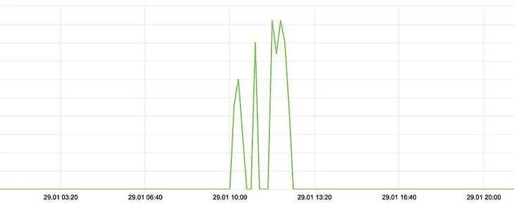 Во время голосования мы заметили подозрительную активность: в субботу 29 января с 10:00 по 13:00 количество визитов на страницу поста с номинантами и голосованием взлетело вверх, а затем резко упало. Это говорит о целенаправленной активности ботов – в случае размещения страницы где-либо или голосования через друзей график не полетел бы вверх так быстро и не упал бы так резко.