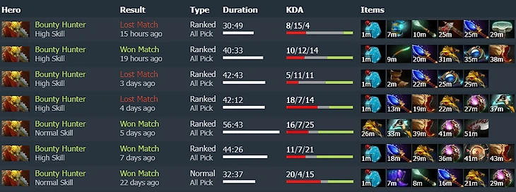 Во время одной из игр мой тиммейт рассказал, что, оказывается, мидового БХ через Аганим-Октарин иногда использует Topson в пабликах, и у него отлично получается. Это не удивительно: сильной стороной Топсона всегда было умение сыграть нагло, но сыграть так, чтобы непременно выжить на 10 единицах здоровья. Если такой геймплей вам по душе и если вы знаете, как выжать максимум ресурсов из врага, то БХ – ваш выбор. Если вы привыкли играть от перефарма или от выигранных линий, такой Bounty Hunter вряд ли вам понравится.