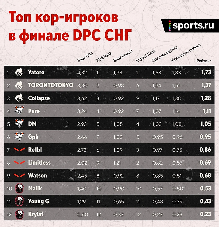 Рейтинг финала DPC СНГ: Яторо – лучший, Коллапс – в топ-3