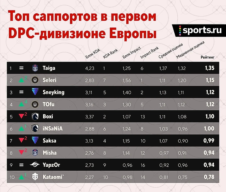 – Taiga показал космический уровень. 1,35 – лучший результат среди саппортов за два сезона в Европе.