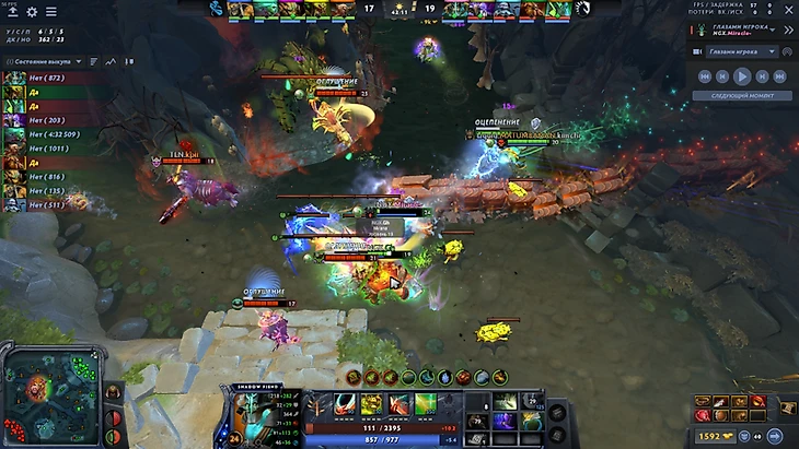 Рассмотрим все подробнее, как и где кому не повезло. Miracle делает очень хороший мув: он использует крутилку и заходит на рошана, дает вижн своим двум инициаторам.