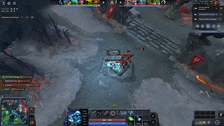 При этом Moogy в соло на веномансере убивает шейкера. Кажется, что все идет отлично! Однако это не так, при попытке убийства лича 4-го уровня Kaka зачем-то делает тычку и прокачивает стан в два, что не позволяет ему застанить, так как маны не хватает. В результате этого они не могут забрать простой килл, что скорее всего приводит в тильт Kpii на кентавре. Иначе объяснить стан первого уровня просто так в крипов я объяснить не могу. Заметьте, после возрождения джаггернаута прошло не больше 8 секунд, он просто бы не смог добежать до него в случае использования телепорта на шрайн. На крайний случай после использования фисуры шейкером, ведь кентавр мог нажать тп на базу.