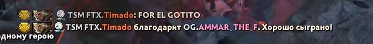 Что до фразы Timado в конце игры «For El Gotito», то это было отсылкой к саппорту Thunder Awaken – Matthew. Его тиммейт по Thunder Awaken Pandamoo в одном из послематчевых интервью рассказывал, что они всегда хотели как-то поиздеваться над Аммаром в компетитив, потому что Аммар флеймил Matthew в матчмейкинге. Pandamoo пообещал в случае победы над OG выложить Аммару под фонтаном несколько Mantle of Intelligence.