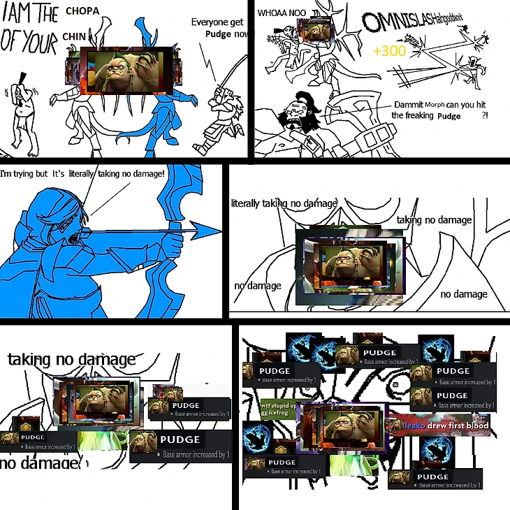 Когда какому-то герою добавляют одну единицу брони, то в ход идет бесконечный комикс. Аватарка накладываются на предыдущего номинанта, при этом сохраняются предыдущие версии мема на нем же. Подняли броню на один? Герой теперь не получает урон и становится неуязвимым.