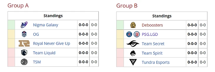 Участники разделены на две группы по 5 команд. Они сыграют друг с другом по разу в формате best-of-2.