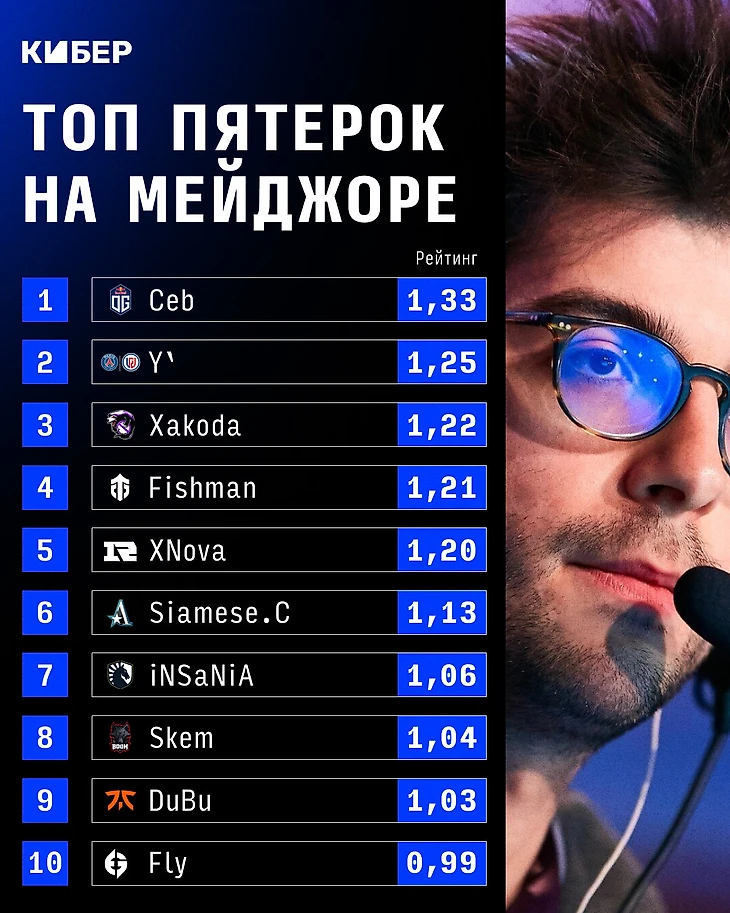 Групповой этап завершился. Поздравляем Outsiders (VP) и Team Spirit с выходом в верхнюю сетку! К мейджору в Арлингтоне мы заметно улучшили рейтинг Кибера: теперь его формулы стали еще точнее, а дизайн – еще круче. Обо всех изменениях и деталях работы рейтинга можно прочитать здесь. Давайте же подведем итоги!