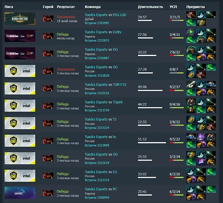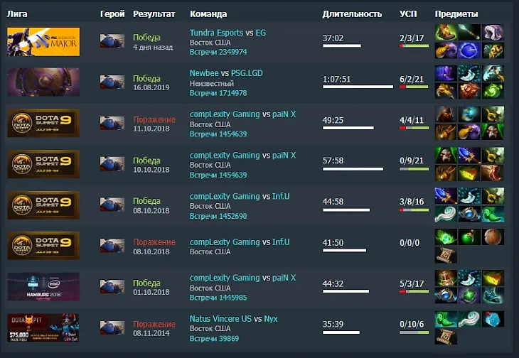 Sneyking: Alchemist- 2 пика, Winter Wyvern - 3 пика, Marci - 1 пик, Warlock - 2 пика, Dazzle - 1 пик, Enchantress - 1 пика, Chen - 1 пик,Orge-Mag - 1 пик, Zeus - 1 пик, Phoenix - 1 пик.
